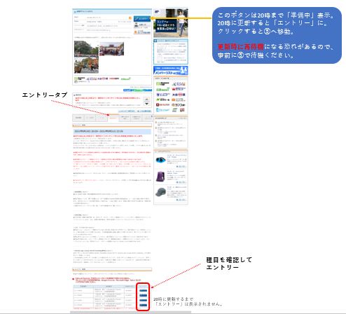 エントリー時間までに⑤の段階のページまで進んでおくと、エントリーがスムーズです